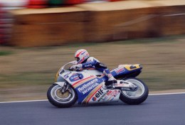 #4 もはや説明不要だが,予選で転倒した際の右足の初期治療の失敗で,終盤までの欠場を余儀なくされ,大量のポイントリードはレイニーによって切り崩された。このときのアッセンの決勝はスズキとカジバ,つまりシュワンツとローソンがトップを争っていたが,あろうことかファーストコーナーでローソンがシュワンツにイン側から接触,シュワンツはそのまま転倒,コースアウト。ローソンは,一瞬ぐらりとするマシンで持ちこたえる....ことは出来ず,結局両者リタイヤ!僕はローソンのファンでもあるのだけれど,このときばかりは「あぁっ,せっかくのレースを,なんてことしてくれるんだ〜っ!」と,思った。 戻る