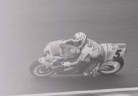 明けて決勝日,500ccはやはり雨のスタートとなった。今に比べれば台数は少ないが,6強という役者も揃ってウォームアップラップの済んだライダーが次々にグリッドに並ぶ。そして,グリーンシグナル。500ccマシンが一斉に”甲高い”音を響かせ,1コーナーへと飛び込んで.....