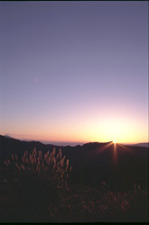 早朝の,独特の緊張した空気の中で耳をすますと,ゆるやかな風に乗って微かにバイクの集合管の音が流れてくる。ビーナスライン? 徐々に白んでくる山の稜線を見ながら,太陽が昇ってくるはこの辺りかな?と目星をつけて三脚の雲台を調整する。シャクッ,とフィルムを巻き上げたら,とりあえず準備は完了だ。