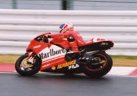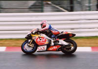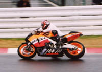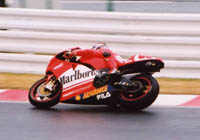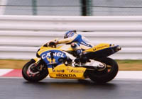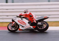 既に200戦以上走っているライダーですが,初参戦は意外にも80ccクラス,'86年のスペインGP。TZ250を経て,'90年から500cc。カジバ時代,あるいは優勝を目前にしながら何度も転倒したスズキ時代など,セカンドライダーの印象が強いのですが,'95からホンダ。昨年の八耐の怒濤の追い上げも記憶に新しいところ。早く怪我を治してイタリアン三人との接戦を見せてもらいたいトコロです。 menu
