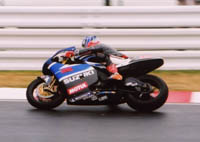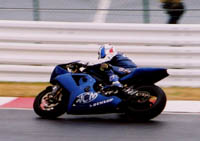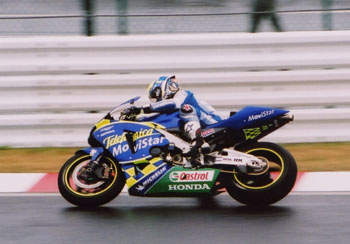'96の鈴鹿8耐優勝コンビでもあるエドワーズ選手と今年はmotoGPで走る。WSB時代はその豪快なライディングで超有名,イギリスでは「イギリス人になってくれ!」と言われるほどの人気だったとか....。今回は転倒から追い上げたため,他の日本勢同様,目立たなかった(トップから1分遅れの12位)けど,2001年に一度参戦した500cc時代のリザルトを上回るのは確実?