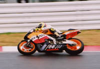 この鈴鹿に関しては,序盤にロッシ選手を追走中もS字の進入で振られていたり,後で見たビデオでも全体に挙動が唐突な感じを受けましたが....。昨シーズン,二勝をプレゼントしたヤマハを離れてロッシ選手と同じイクイップメントを選んだ訳ですが,RC211Vの初レースでそれでも他のライダーを抑えて2位。移籍が吉と出るか,凶とでるか?ちなみに31歳。 menu