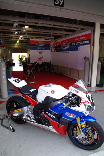 TTレジェンズのピット。77番の番号は「TT」に見える....ということで選ばれたのかな?