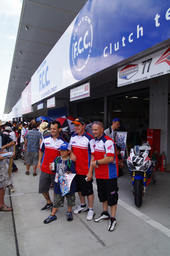 他のヨーロッパ系のチームクルーが時々(ヨーロッパではある意味英雄である)TTレジェンズのピットをのぞき込みに