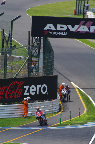 しかしデグナー経由でコース脇をマシンを押してピットまで帰着してきました。