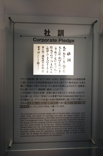 ヤマハの社訓。「お客様には誠実に」「他社に負けないものを作ろう....」が基本の柱とのこと。