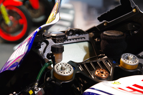 1Fでは,今年のカラーリングのYZR-M1がお出迎え。いつも思いますが,こういったマシンの作り込みの緻密さ