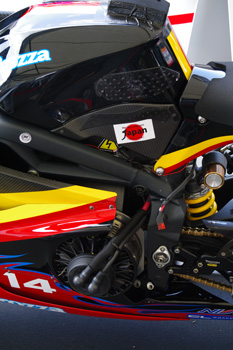 マシンの左右にアグニ?のモーターが取り付けられています。シャシーはデイトナ675がベース