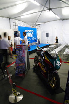 前日のMOTOナビスペースで。帽子にサインを貰いました。