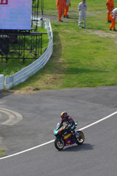 8耐スタート前にデモランを披露した松下選手&TT-Zeroマシン。
