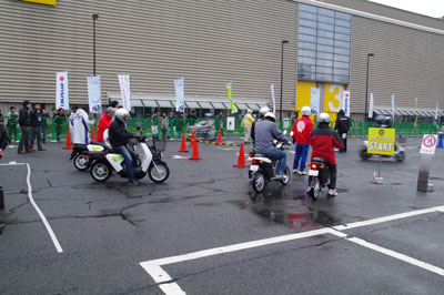 電動スクータの試乗場所でも「初めて原付に乗る」という人が居たり