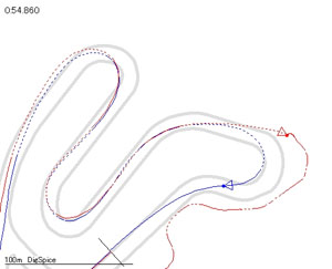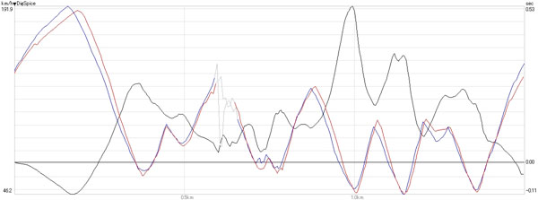 赤→青:ストレート(0.2s)と1ヘアピン(0.1s),45R先の速度〜最終立ち上がり(0.1s)