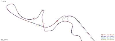 よくよく見ると,ストレートエンドで初めて200km/hを越えるようになってきました(max201.4km/h)